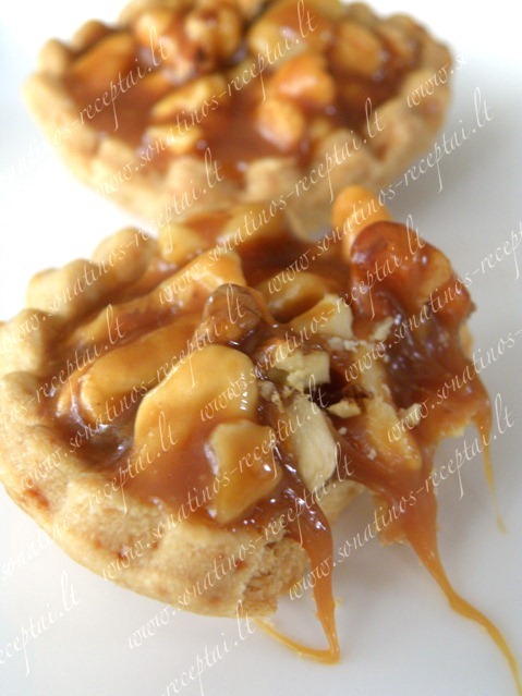P. S. be abejo, krepšelius galite išsikepti ir pagal savo mėgstamą receptą. Tačiau ši tešla labai universali – tinka ir saldiems, ir nesaldiems krepšeliams. Ją galima pagardinti sezamo sėklomis, aguonomis ar smulkintais žalumynais. Karamelė man ėmė keisti spalvą ne po 3 – 4 minučių, o gerokai vėliau. Tiesiog neišsigąskite ir virkite iki norimos spalvos :) Riešutus galima naudoti įvairius. Šį kartą turėjau tik graikinių riešutų, bet skaniausia būtų pamaišyti įvairių riešutų. Labai skanūs pyragaičiai – išsikepkite ir mėgaukitės!